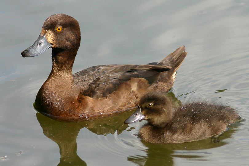 Reiherente mit Küken