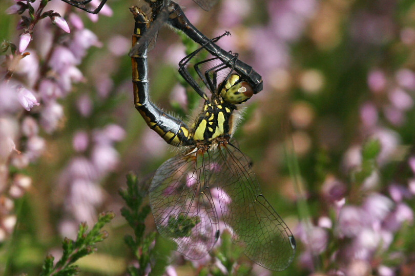 Schwarze Heidelibelle - Weibchen bei der Paarung