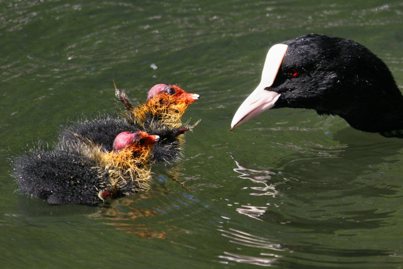 Blesshuhn mit Küken