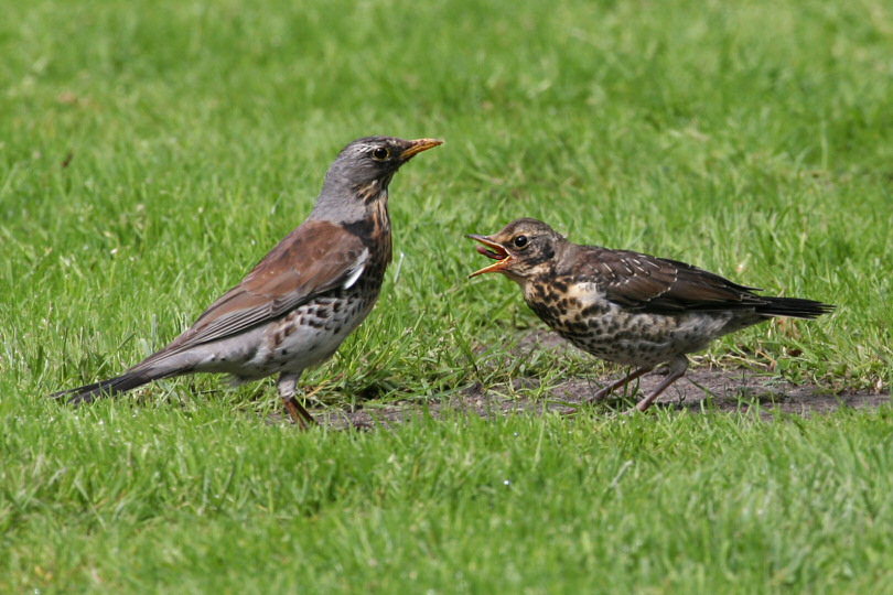 Wacholderdrossel mit Jungtier 1