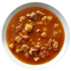 GulaschsuppeZutaten für 6-7 Teller:800 g Schweinegulasch800 g Kartoffeln 2 Paprikaschoten 1 Möhre 1 Dose gehackte Tomaten (440g) 1-2 Schalotten oder Zwiebeln 1 Knoblauchzehe 1,4 l Wasser Öl zum Anbraten Salz Pfeffer Paprikapulver edelsüß Paprikapulver scharf |
