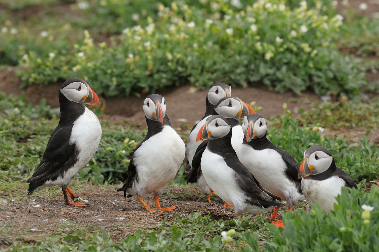 Farne Islands (Inner Farne) Papageitaucher sind wirklich gesellig!