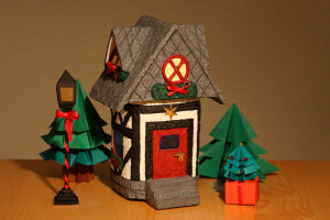 Weihnachtshaus Dieses kleine Häuschen besteht hauptsächlich aus einem Konservenglas und Pappmaché.