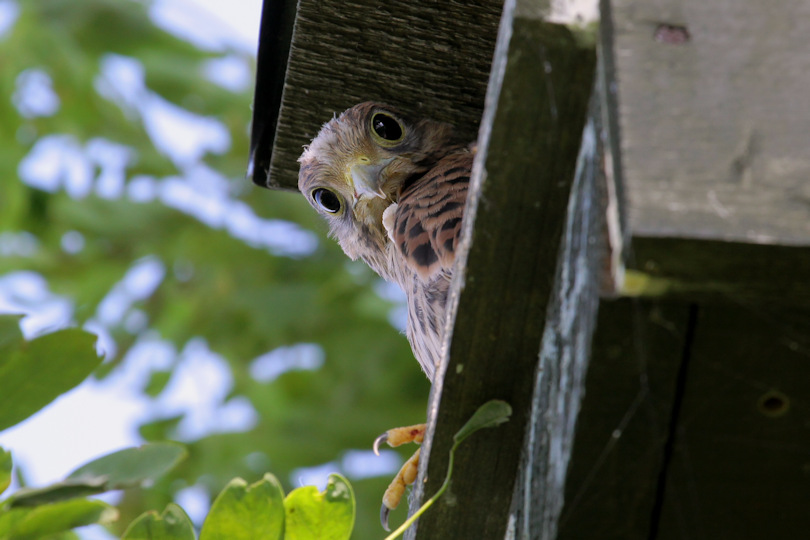 Junger Turmfalke im Nistkasten
